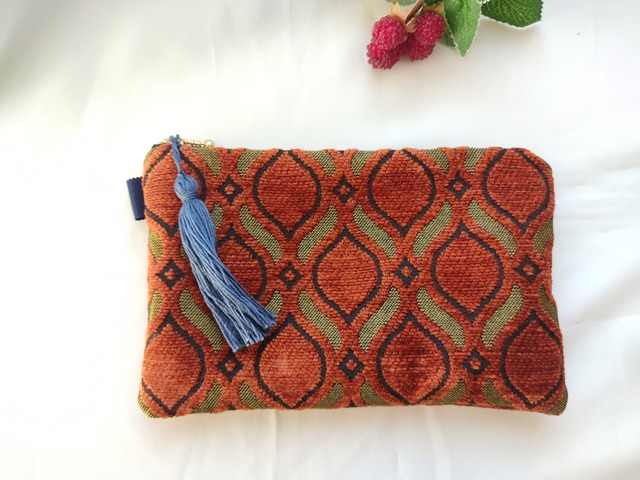 ゴージャス♡ジャガード生地 フラットポーチ メイクポーチ 高級感 スペイン生地